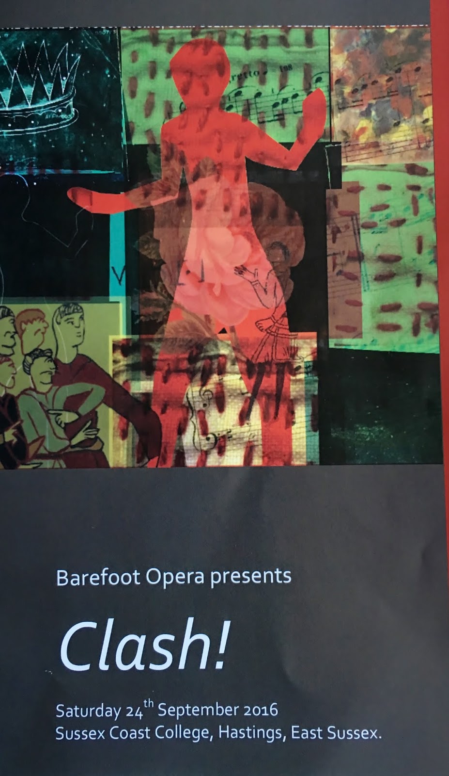 Well, Anyone who was Anyone in Hastings was at ‘Clash’, including Hastings Battleaxe, the Philosopher and step-son Tom who is staying for the weekend.  The A who were A were either in the (large) audience, or singing in one of the seven choirs. I had a special reason to go – to see friends’ poems performed as part of the production.