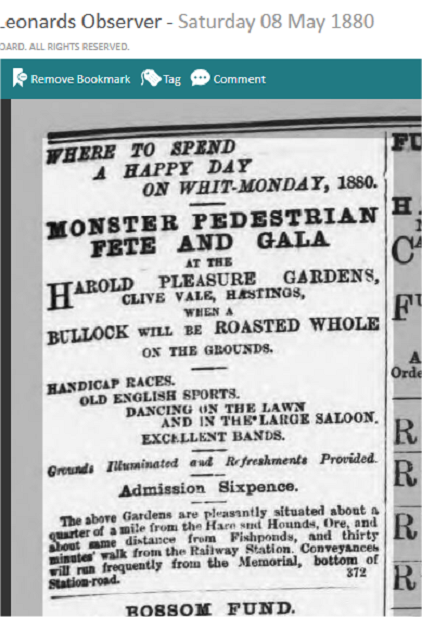 The old house was not finally demolished until the 1970s. When my previous post appeared on one of the Hastings history sites on Facebook, people commented that they had played in the derelict house as children. Still, there must have been other bits of the building that disappeared earlier – one of the articles below mentions a saloon capable of holding at least a hundred people. The site is now covered in new housing