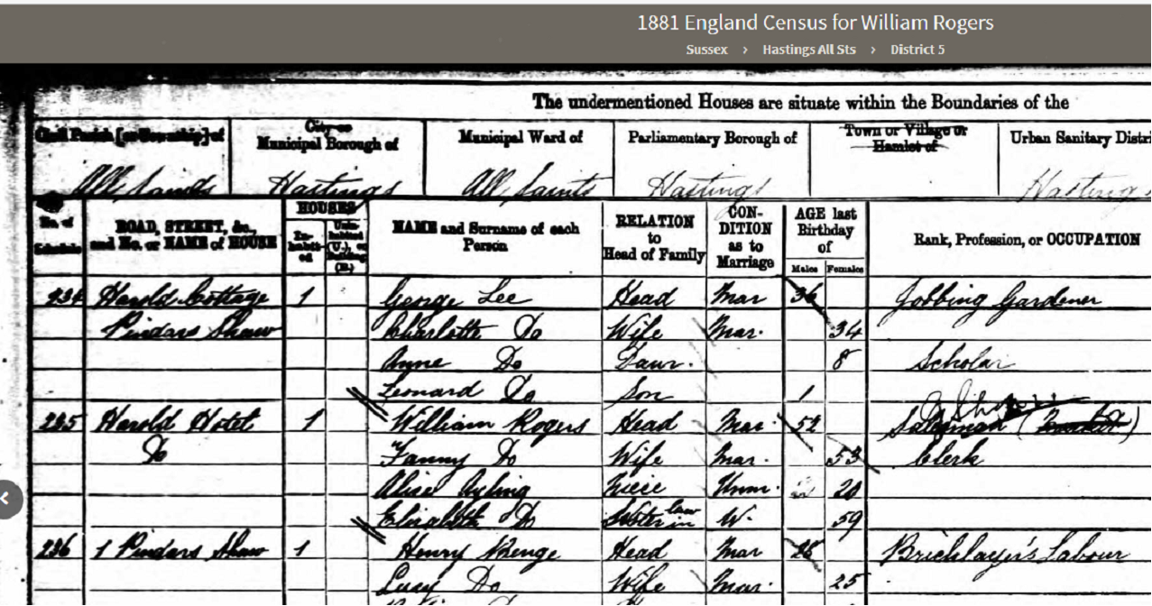 R Rogers, was already living with his family at the Harold Hotel at Pinders