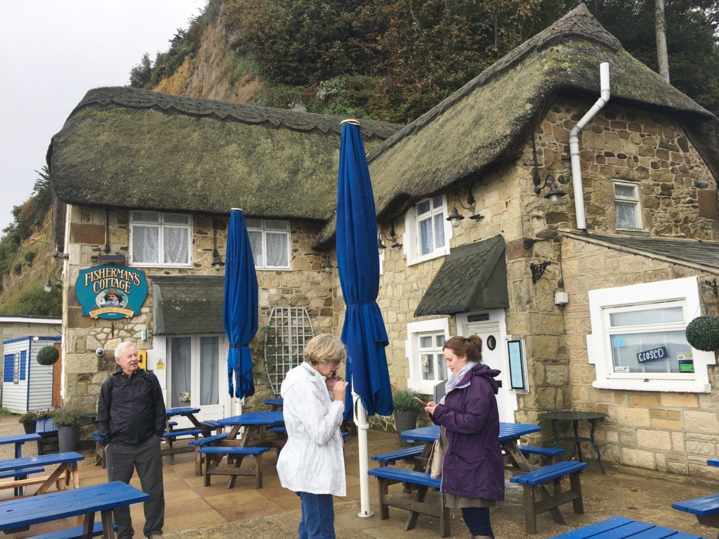 The next day, the weather was a bit dodgy – it had rained hard, but was dry when we set out. I had planned for us to go over to Shanklin and walk down Shanklin Chine – we tried last year but it had just closed for the season. After that, we’d have lunch at a famous thatched pub on the beach – the Fisherman’s Cottage. The Chine is one of those romantic Victorian gorge walks, which I always like… Well, Sunday was not our day. Firstly, there was a big road accident by Sandown so we struggled to get there. Then, the bloody Chine was closed because it had rained…. aargh. Never mind, sez I, we’ll walk round and down and still go to the pub. So we set off and eventually arrived at the pub. Nooo.. closed because of bad weather… What kind of wusses are these IOW folk! So, Battleaxe still doesn’t know about the Chine – have to wait until next year!
