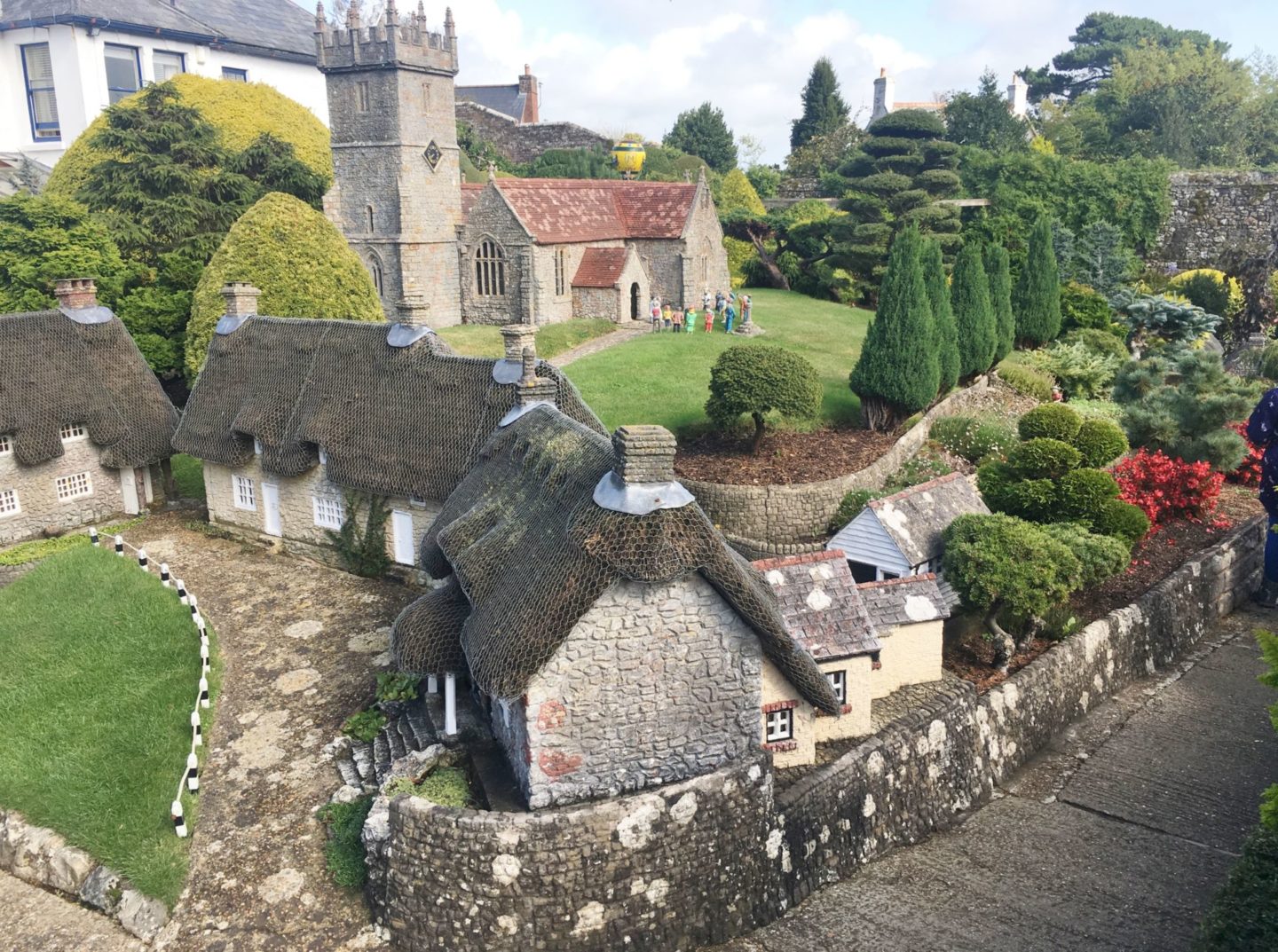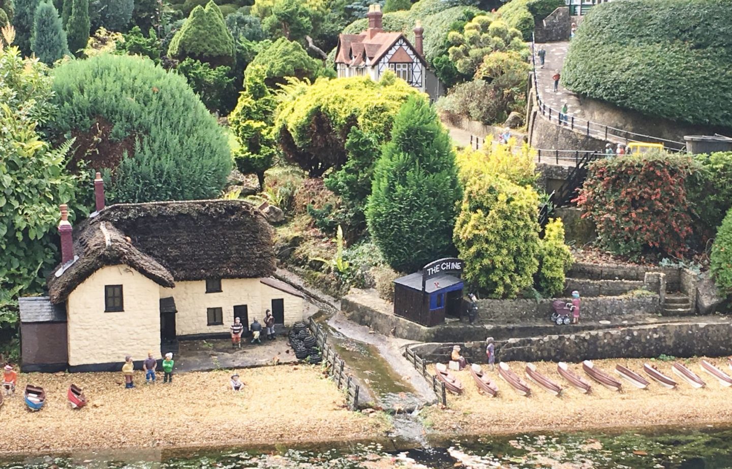 After, we went to a crazy place – the Godshill Model Village. I was curious because it is an RHS partner garden, and Philosopher always likes a model village, so why not. It was actually lovely. Very large, with masses of beautifully pruned and bonsai trees and shrubs. All the little gardens had trees to scale. There was even a model of Shanklin Chine, with the pub on the beach… – the nearest I’ll get for a bit! If you like a bit of twee and pretty trees, Battleaxe would recommend.