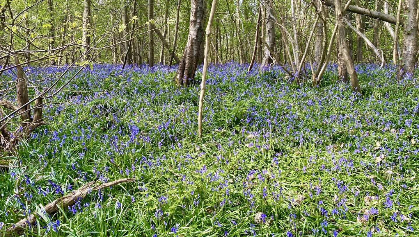 Talking of booze, at Christmas Philosopher’s son Tom sent us a Carr Taylor vineyard voucher, so yesterday we decided to go along and have a look. It is only a couple of miles from here, in Westfield. Needless to say, the place was deserted except for one woman in the shop. She told us they were worried about the weather – the extreme dry, coupled with a threat of frost just when the vines are at their most vulnerable – putting out tender shoots. We spent the voucher on some bottles (the ginger wine is fab btw) and had a quick look at the vines – it was freezing cold out. They also have a little bluebell wood – with bluebells of a particularly intense blue.