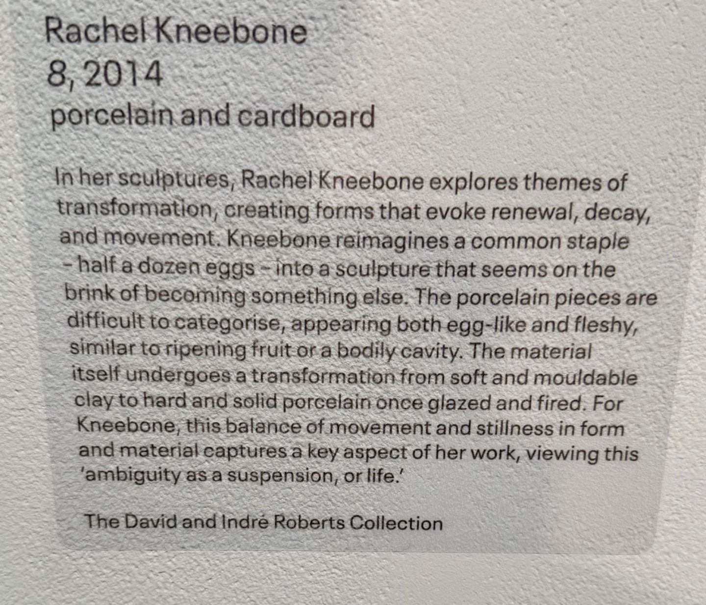 Interesting, but it’s sleeping, not dead. Am willing to have my assumptions challenged but what really got on my tits were the labels. How does the convoluted, pretentious art-speak help? In my view, it hinders. By the time you have read it you have lost interest in the object it refers to. Here are a couple of examples, with their labels: