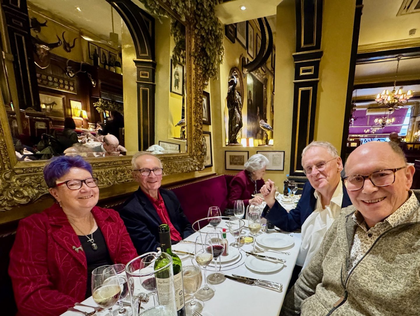 Anyway, here he is, snapped unobtrusively, and here are the four of us, taken rather wonkily by the waiter. You can see the Duke’s lady companion in the background.