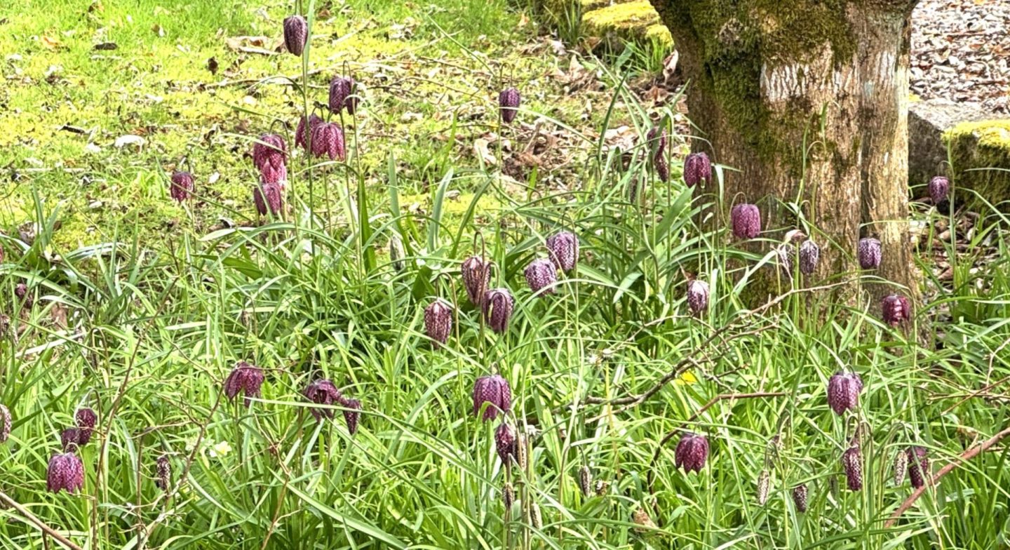 The flowers are extraordinary this year – so early, and the lane down to Penberth Cove from Treen is full of both wild and garden flowers. Here is a patch of fritillaries… I love that chequered pattern.