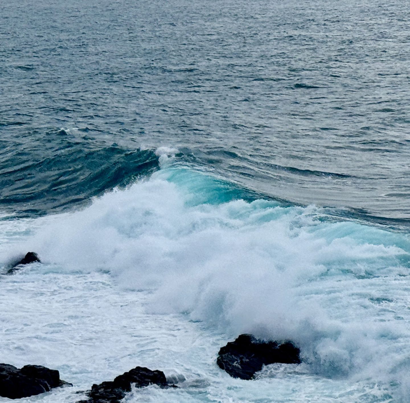 We went to Cape Cornwall – Philosopher and I both spent time trying to photograph the waves. We have noticed before that just before the waves break, in certain weather conditions they show a bright turquoise flash of colour. Our efforts were largely futile because it is incredibly hard to capture the effect, which only lasts a second. Here is my best effort…